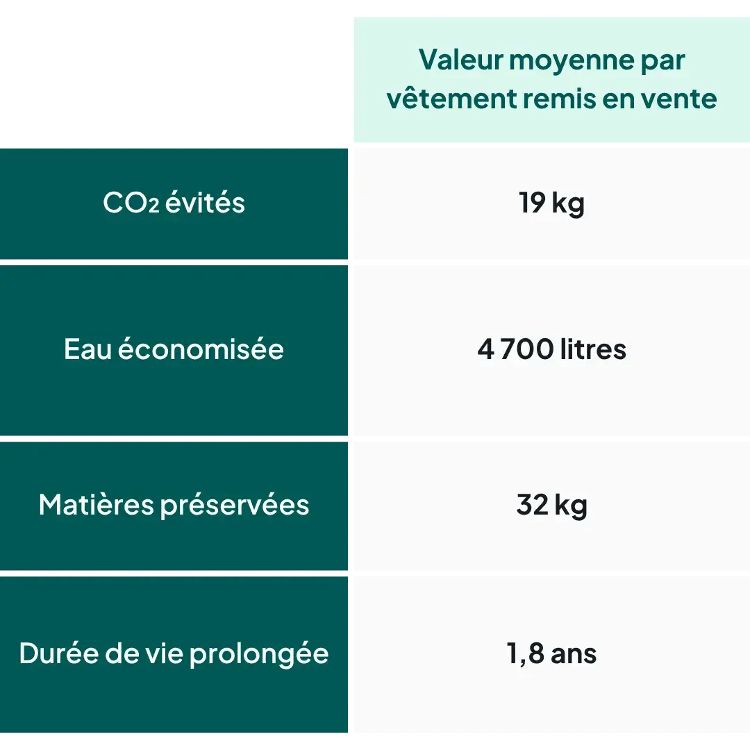 Chaque vêtement remis en circulation contribue à prolonger sa durée de vie utile — et à éviter, dans certains cas, la production d’un équivalent neuf.